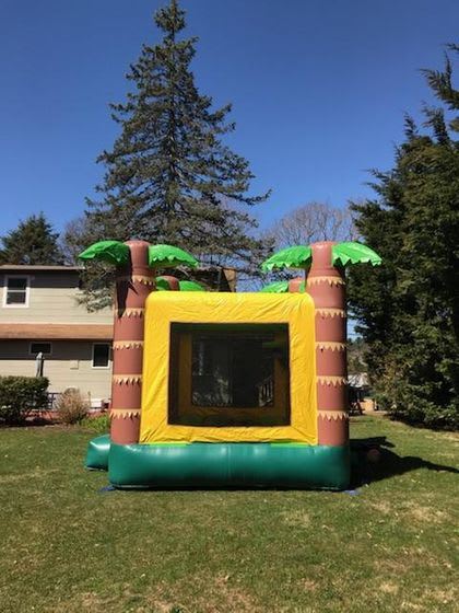 Rent the 13x13 Tropical Bounce House With Hoop Bouncer 37 for your next party or event in Long Island, NY. This vibrant and exciting bounce house is perfect for kids of all ages and will bring hours of fun and entertainment to your gathering.